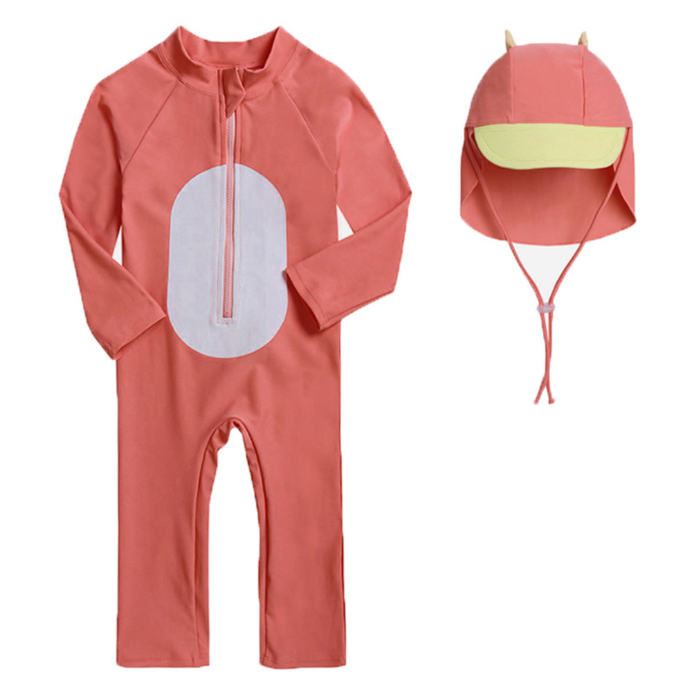 ☆ オレンジレッド ☆ 4(90-100cm) ☆ 水着 キッズ キャップつき pmykswim004 長袖 水着 キッズ 子ども水着 スイムウェア ベビー 收藏