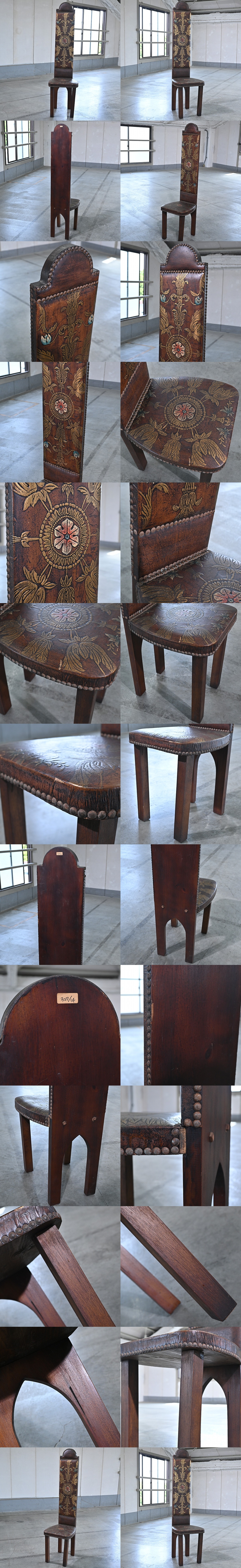 アンティーク調 ハイバックチェア チーク材 鋲打ち リビング ダイニング 店舗什器 カフェ ラウンジ ホテル ロビー クラシカル 食卓 椅子 收藏