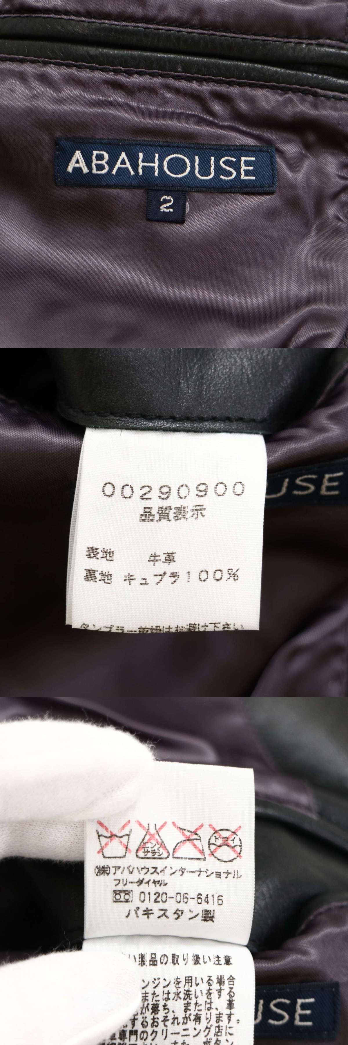 ABAHOUSE アバハウス 秋冬 牛革 リアル カウ レザー★ テーラード ジャケット ブレザー Sz.2 メンズ 黒 收藏