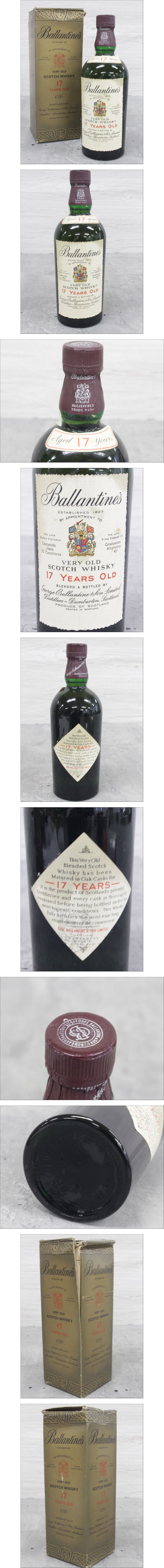 | 商品説明 | 発送はご入金 年齢確認の2点の確認が取れてから 3日~7日での発送となります。 集荷の関係ですぐに発送対応できず、直近の日時指定のご希望には添えない場合がございます。 商品お急ぎの方はご注意ください。 【重要】 ※ご注文時、配送方法選択欄で『直接引き取り』を選択された場合は、 神奈川県藤沢市 桐原町の事務所へ落札から1週間以内に商品を引き取りに来ていただく必要がございます。 誤って直接引き取りを選択された場合、ヤマト運輸着払いでのみ対応可能です。 その場合、ヤマト運輸正規料金での発送となりますので、記載の送料と異なる場合がございます。 取引ナビにて着払いご希望の旨、ご一報ください。 ご連絡を頂いてからの発送となりますので、ご了承くださいませ。 【商品情報】 名称:バランタイン 17年 種別:ウイスキー 産地:スコットランド 容量:750ml アルコール分:43% 【状態】 未開栓の為、味・品質・風味・内容量・コルクの状態等の保証は出来ません。 外装状態は画像をご確認の上、予めご了承頂いた上での入札をお願い致します。 ラベル汚れ、箱に傷み全体的な破損がございます。 【注意事項】 20歳未満の方への酒類の販売は固くお断りしています。 大変恐れ入りますが、ご購入の際にはご生年月日をご回答の程、 よろしくお願い申しあげます。 ご回答がない場合、20歳未満の者の飲酒の禁止に関する法律に基づき、 酒類の販売はいたしかねますので、あらかじめご了承ください。 写真と商品との色合いに差があることが御座います。 小傷や汚れなどある場合も御座います。 落札後の画像の送付依頼は対応しておりません。 画像の物がすべてです。 気になる点・不明な点がある方は、必ずご質問下さいませ。 経年劣化による箱、コルク栓、ラベル、付属品、ボトル本体にダメージがある場合があります。 状態を極度に気になさる方、神経質な方はご入札をお控え下さい。 入札後の商品に関するご質問はお受けできません為、疑問点は必ず入札前に質問して解消してからご入札ください。 【配送方法】 ヤマト運輸 厳重に梱包させて頂いておりますが万が一破損があった場合は配送業者へご一報お願い致します。 集荷の関係により、ご入金確認後3-7日の日数を頂く場合がございます。 その他業者指定での発送はお受けしておりません。 ※北海道・沖縄・離島の場合は着払いでの発送となります。 ご落札後、配送方法を直接引き取りに設定し、送料0円に変更してからご入金をお願い致します。 ※※定休日・落札間際での質問&取引メッセージについて※※ 9時~16時での確認をしております。 火曜・水曜は定休日となります。 定休日・上記時間外は取引全般対応しておりません。 営業日も不在の場合、ご連絡が遅くなることがございます。 質問&取引メッセージは定休日明けに順次ご連絡となります。 時間外、落札間際の質問や入札取り消し希望等の対応は出来ません。 あらかじめご理解頂きますようお願い致します。 【決済方法】 ・PayPay(残高) ・PayPay(クレジット)※旧あと払い ・クレジットカード ・コンビニ(セブン-イレブン) ・コンビニ(ファミリーマート、ローソン、その他) ・銀行振込 ※PayPay残高払いのご利用で、送料を変更する必要がある場合すでに決済いただいた金額の返金の前に、落札金額と変更後の送料の合計金額が再度PayPay残高から引き落とされ、お取引終了後、最初に決済いただいた分の返金が行われます。 システム上、変更できない仕様となりますので、ご不便をおかけいたしますが何卒ご理解ご容赦ください。 ◆五右衛門株式会社 ◆〒252-0811 神奈川県藤沢市桐原町3番地 ◆TEL 0466-53-9133 ◆酒類販売管理研修受講日:令和5年7月19日 ◆研修実地団体名:神奈川県小売酒販組合連合会 ◆営業許可免許:酒類販売業免許通知書【 藤法第925号/藤沢税務署】