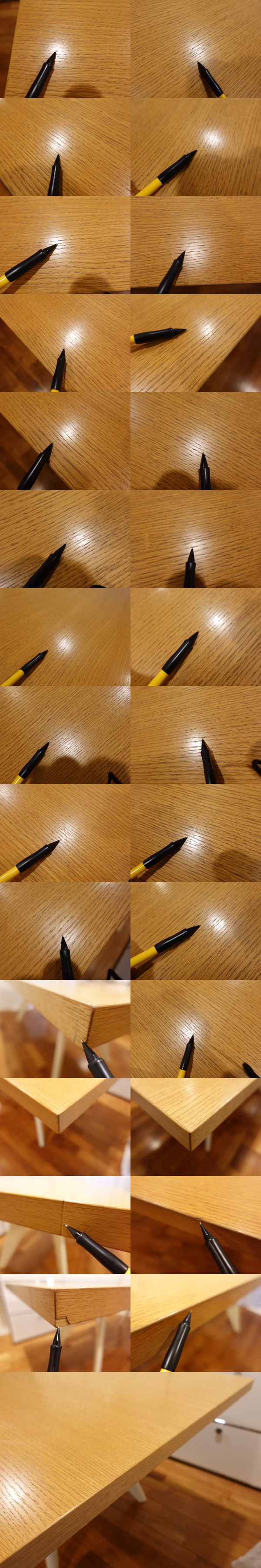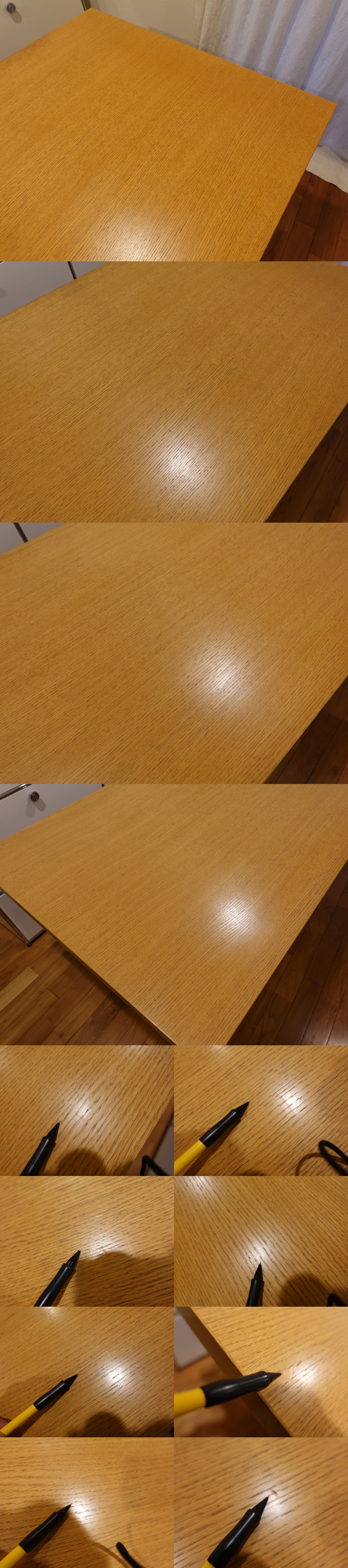 ご覧いただきましてありがとうございます。 マリオ・ベリーニやアントニオ・チッテリオ、チャールズ&レイ・イームズ、イサム・ノグチなど、数多くのデザイナーを抱えるドイツはVitra[ヴィトラ・ビトラ]社。 こちらは、20世紀の建築や工業デザインに大きな影響を与えたフランス人デザイナー、Jean Prouve(ジャン・プルーヴェ)による名作テーブル「EM Table EMターブル/EMテーブル」です。 https://www.vitra.com/ja-jp/product/details/em-table デザイン年は1950年。いまから75年以上前に発表された作品です。 リプロダクト製品も数多く出回っているプルーヴェ作品ですが、Vitra社の正規品です。安心してお求めください。 天板の仕様、脚のカラーバリエーションが多数ございますが、天板サイズ200×90cm/ナチュラルオークベニア(突板)/ラッカー仕上げ/脚ブランコロンブ (旧エクリュ)の組み合わせです。 無垢材ではなく突板仕上げのモデルですが、面材の厚みもあり、無垢材のような質感です。 どっしりと構えたフォルムはたいへん美しく、一目でプルーヴェ作品とわかるフィン状の脚が特長です。 コンディションですが、中古の状態で入手をしたものですので、全体的に感じる使用感がございます。 遠目には比較的きれいに見えますが、天板にはキズがあり、間近で見るとわかる、浅い線キズや打痕が多数ございます。 中古品に慣れた方でしたら問題のない程度かと思いますが、ほぼ全面にキズがあり、経年による日焼けもございますので、新品のようなコンディションをお求めの方には不向きかと思います。 側面角に1か所、面材のはがれがございますのでご確認ください。 天板裏面の塗装と比較しますと、表面はやや塗膜が薄くなっているようです。水分をはじく程度の塗膜は残っております。 脚部は、キズも少なめで塗装の光沢感も十分に残っております。脚先に小さなキズがございますが、ご使用時には気にならない程度かと思います。 サイズも大きく、重量のある製品ですので、安全にお届けをするため、天板を取り外した状態でお届けをいたします。組み立てに六角レンチが必要ですので、ご用意ください。 ボルトを締め付けるだけのかんたんな作業ですが、組み立て作業がお手間でしたら、運送会社の有料組立サービス(4,950円)もございますので、落札後にお申し付けください。(組立サービス料の決済は、振込手数料お客様負担の銀行振込になります) 新品価格も高額で、人気商品のため手放す方も少なく、中古品が出ることもめずらしいプロダクトです。 この機会にいかがでしょうか。 |