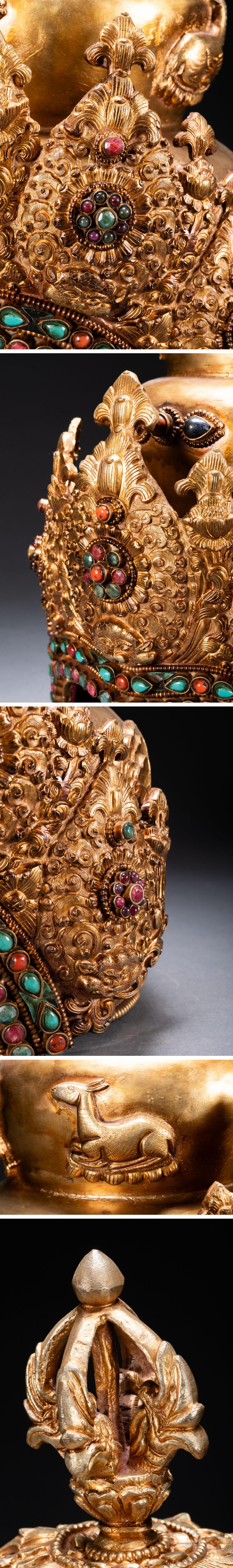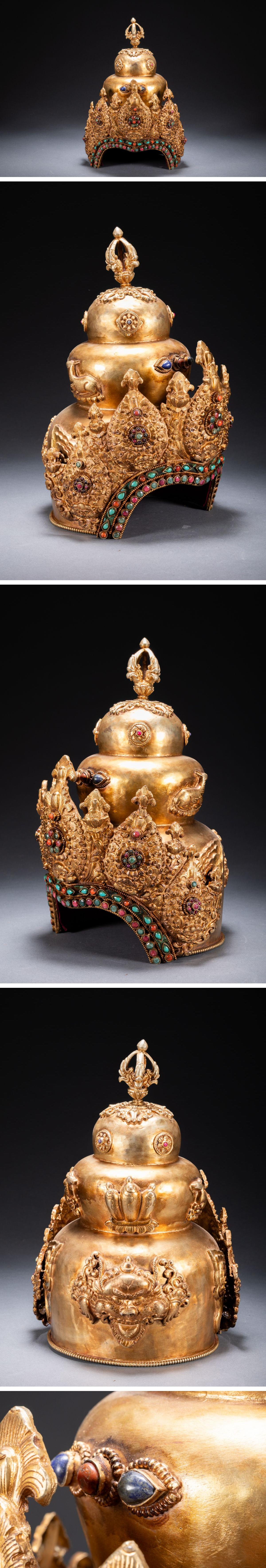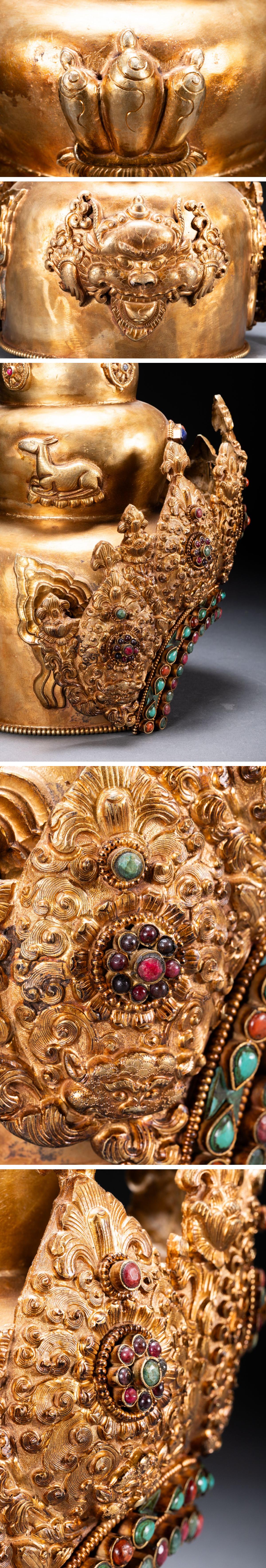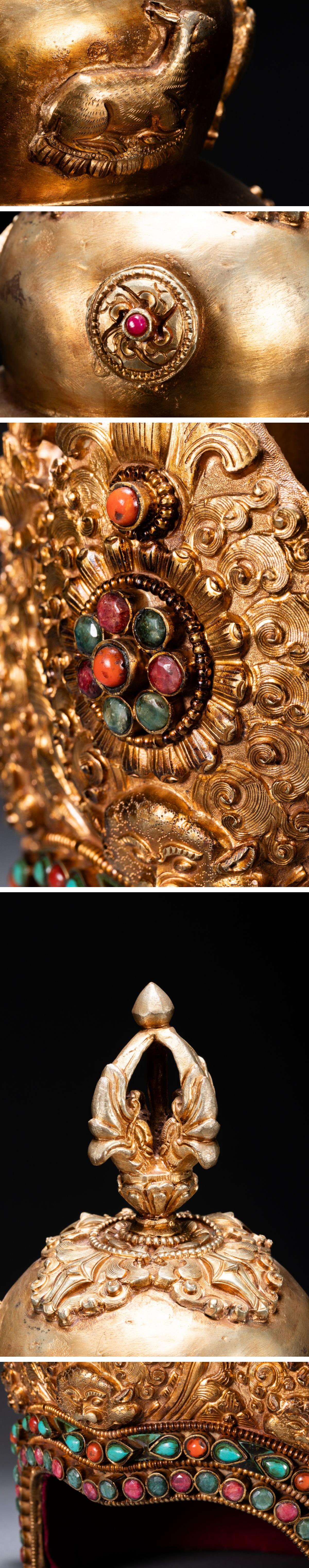 【清】関西某オークション購入 チベット・西藏伝来 時代物 銅金 法冠 密教法器 極細工 古置物 古擺件 中国古美術7L11-111S10 收藏