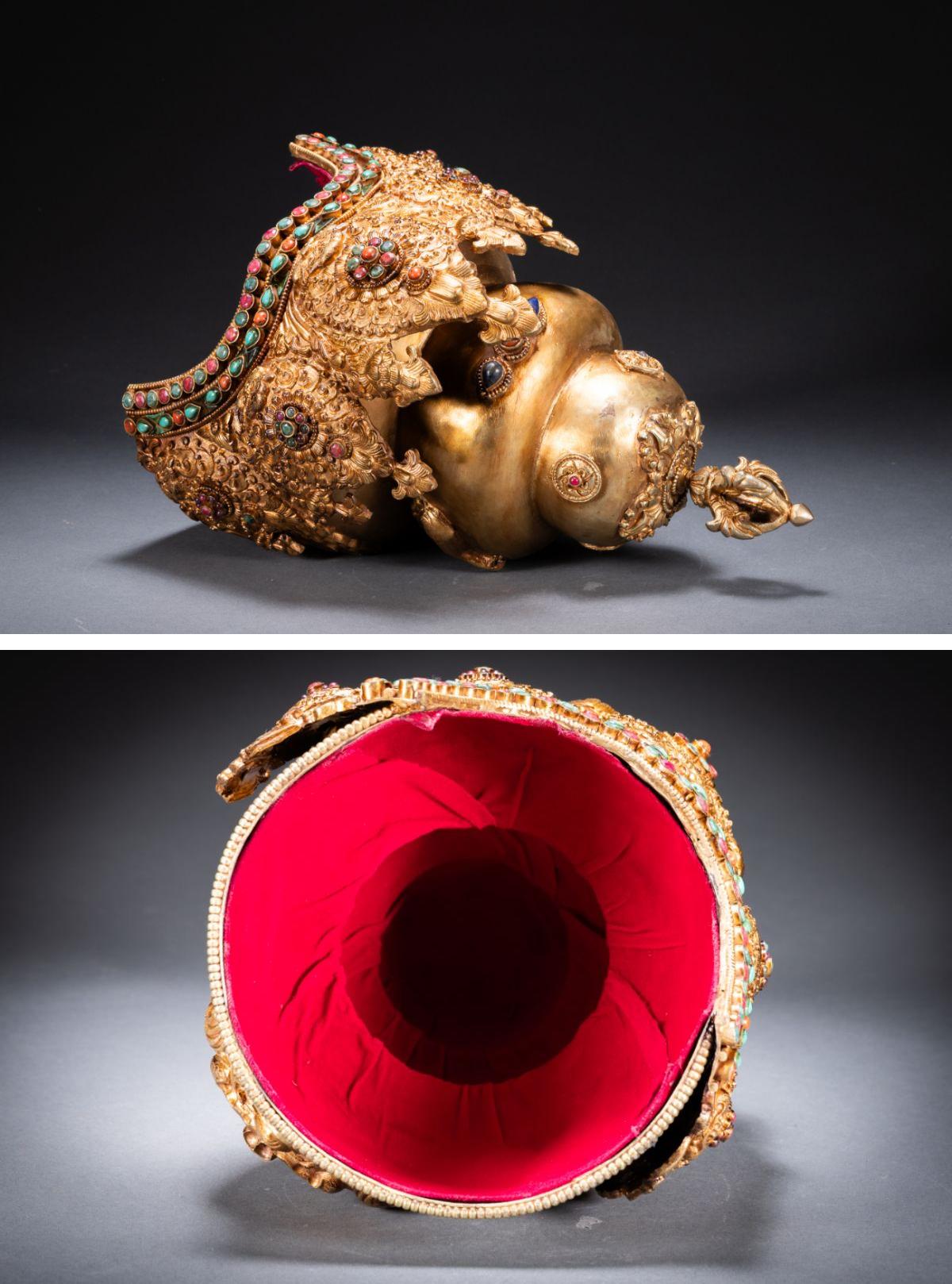 【清】関西某オークション購入 チベット・西藏伝来 時代物 銅金 法冠 密教法器 極細工 古置物 古擺件 中国古美術7L11-111S10