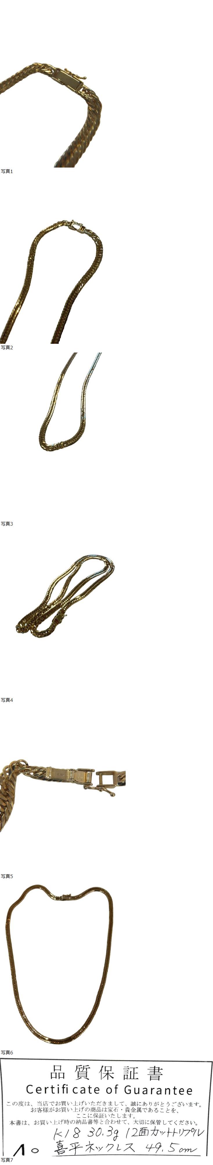 | 喜平ネックレス K18 12面カットトリプル 30.3g 造幣局検定刻印 K18YG 750 |