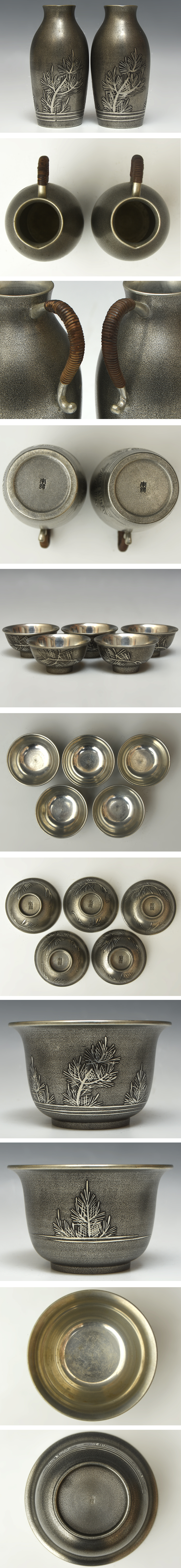 純錫 酒器セット / チロリ 2客 盃 5客 盃洗 1客 / 本錫 会席 懐石道具 酒盃 杯 猪口 ぐい呑 茶道具 金属工芸 |