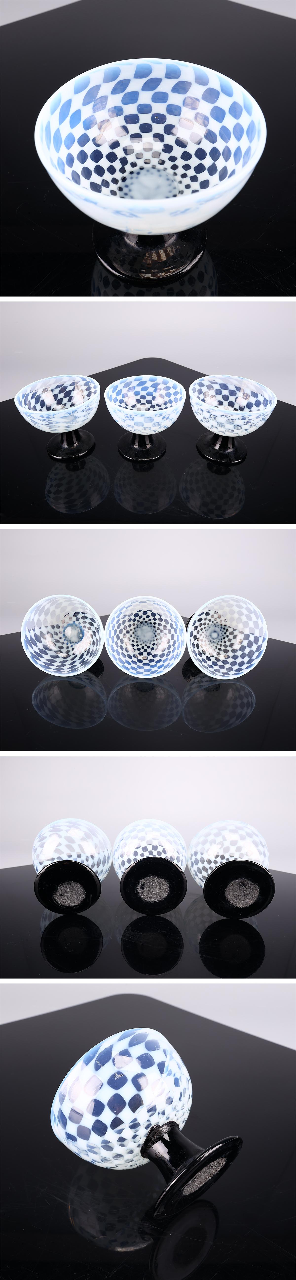【吉】PD379 【明治大正期】 乳白象嵌 黒足 氷コップ 3点 高9㎝/美品! 收藏