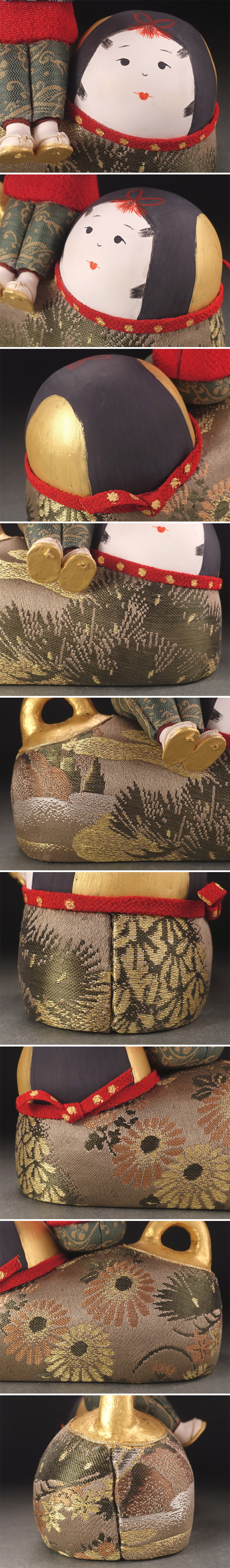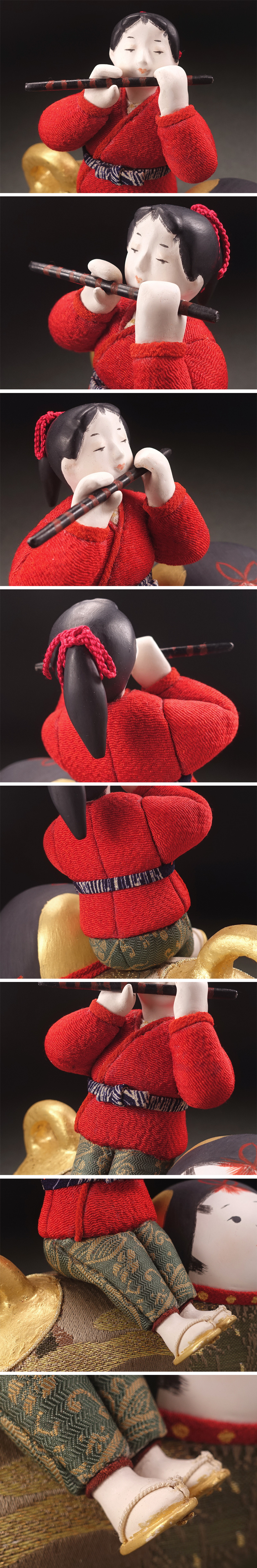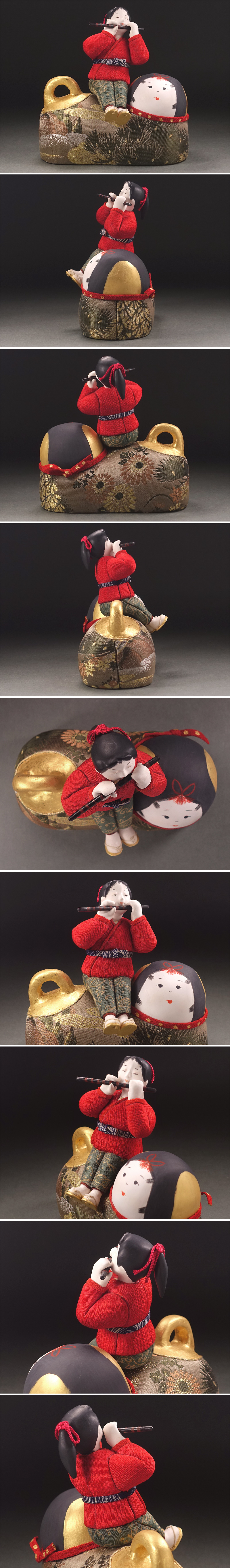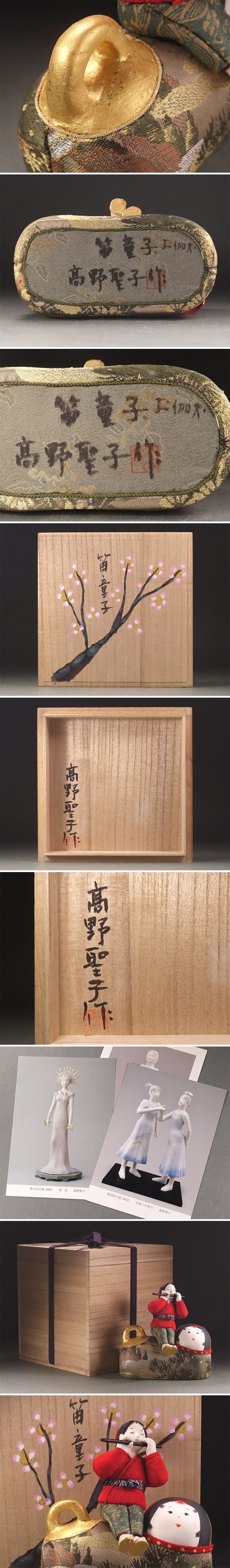 ∇花∇創作人形作家【高野聖子】作 桐塑胡粉彩色有職人形「笛童子・御伽犬」 雅な裂地 共箱には自筆梅図 收藏