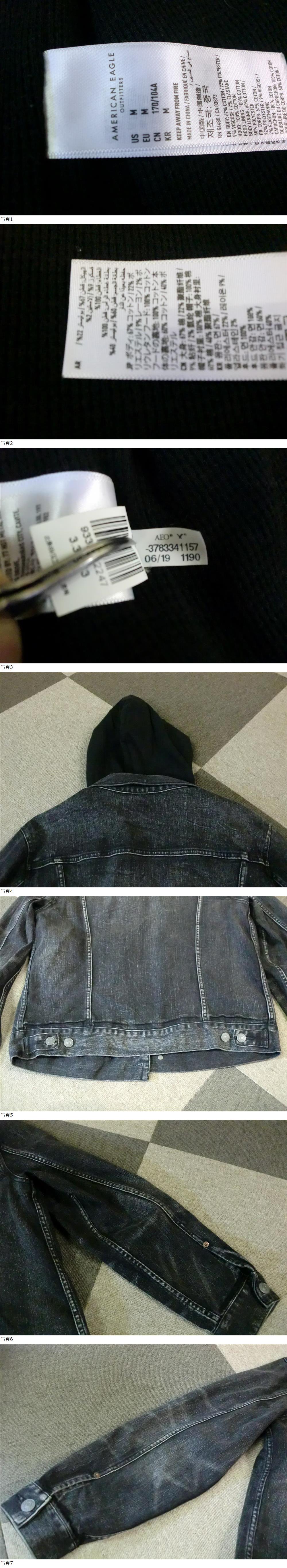 American Eagle next level flex デニムジャケット M 黒 ユーズド加工 フード パーカ アメリカンイーグル ジージャン Gジャン フェード 收藏