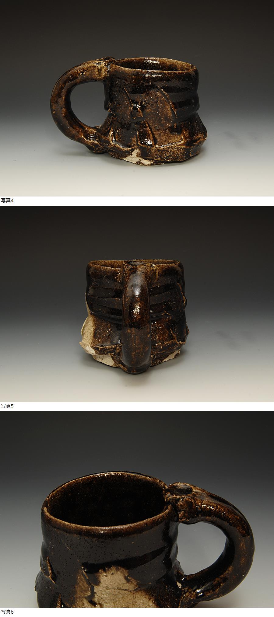 独特の自由な作風の作品の少ない瀬戸黒カップです個展用の完璧な上がりの作品です。
