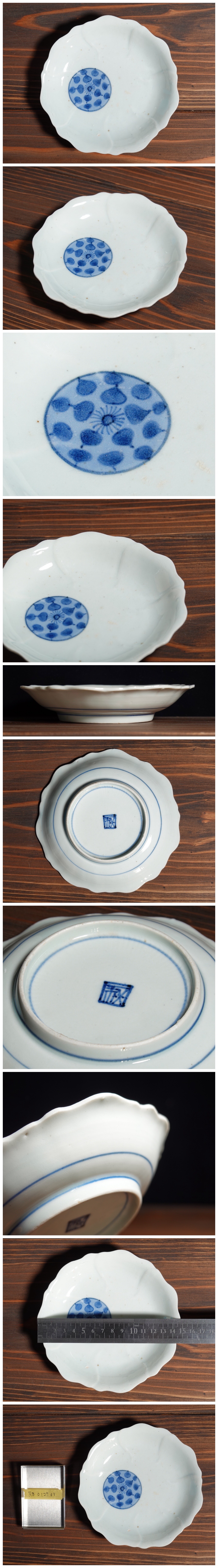 聖陽堂 江戸時代 前期 古伊万里 藍九谷様式 染付 丸紋 輪花形 皿 五寸皿 17世紀後半 捻文 洒脱な逸品 【茶道具 茶懐石 うつわ】 r8 0127 03 收藏