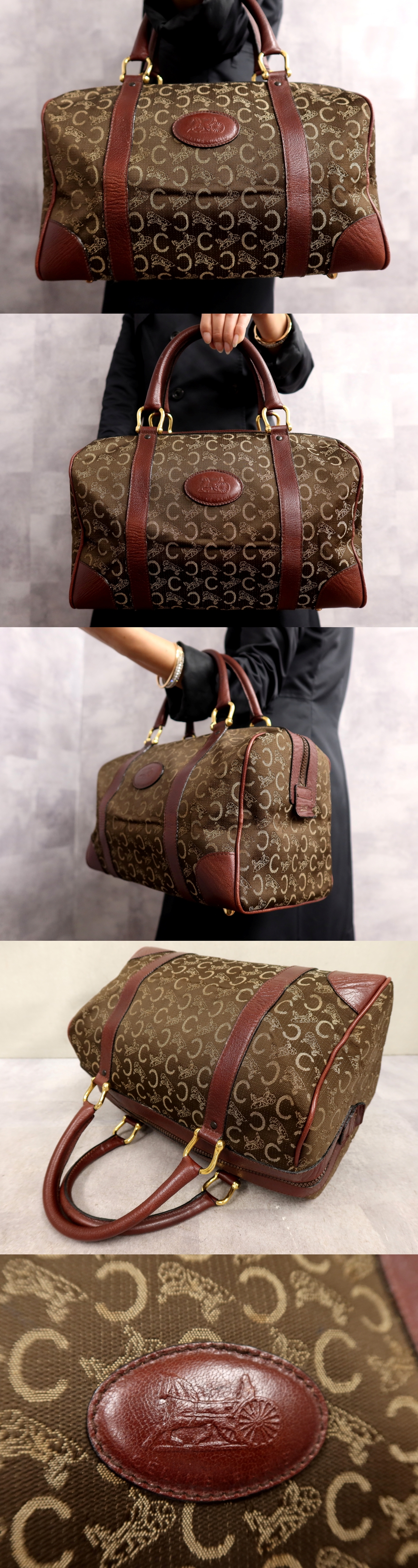 ●超美品●セリーヌ●Cマカダム●キャンバス カーフ レザー 本革●ミニ ボストン ハンド バッグ●ブラウン系●ヴィンテージ●収納●Js64817 收藏