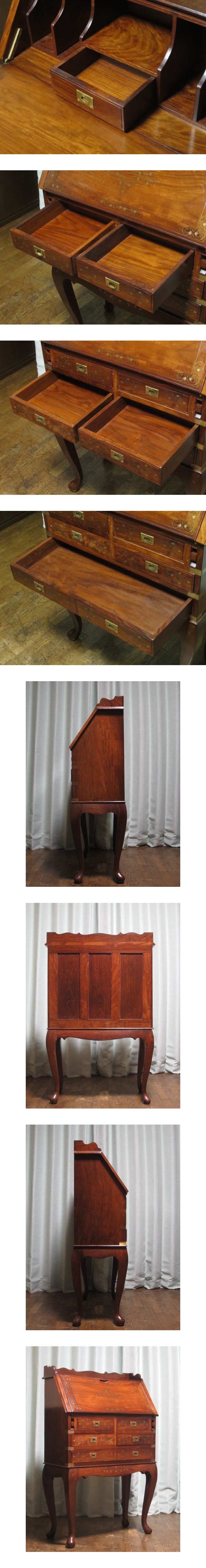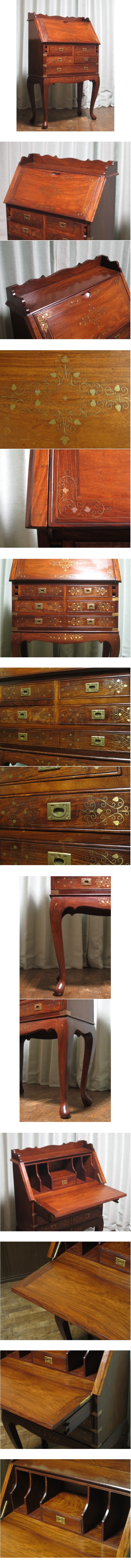 逸品 シーシャムウッド 総無垢材 真鍮象嵌 5ドロアー 猫脚 ライティングビューロー/ライティングデスク/書斎机/デスク/ローズウッド/紫檀 收藏