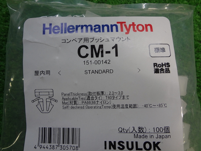 | 商品名 | Kかみ1948 ヘラマンタイン/CM-1■コンベア用プッシュマウント スナップ止タイプ■屋内用 INSULOK 標準 100個入×3袋 |
