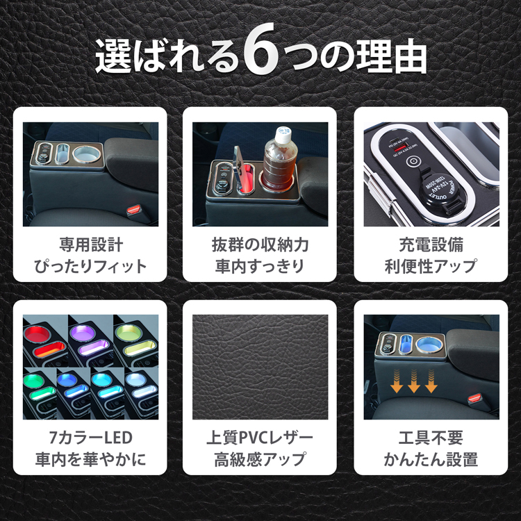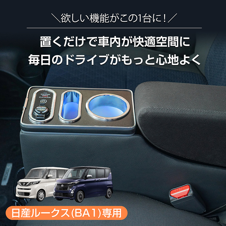 コンソールボックス ルークス ROOX 専用 BA1 収納 大容量 専用設計 高速充電 ドリンク スマホ ホルダー 7色 7カラー LED ライト 車 ee461 收藏