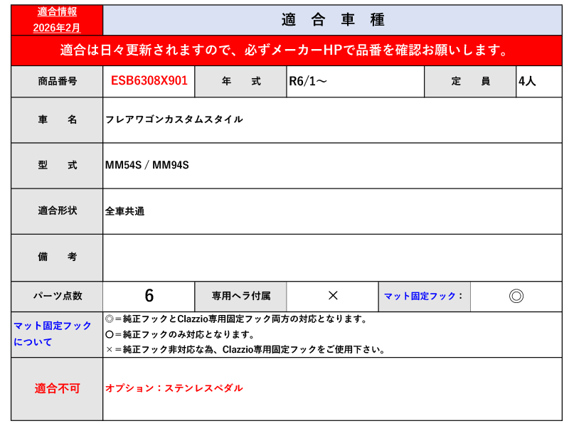 [クラッツィオ]MM54S,MM94S フレアワゴンカスタムスタイル(R6/1~)用ふかふかフロアマット(ラゲッジ無)[ESB6308X901] 收藏