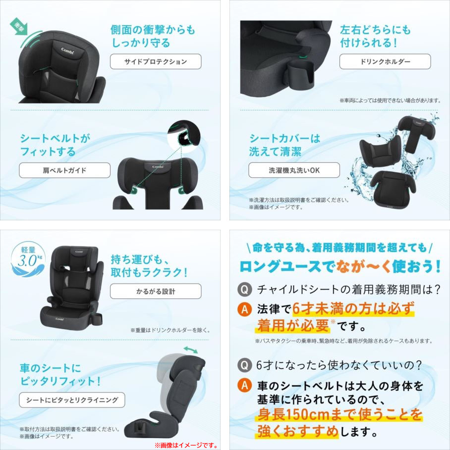 【商品特長】 ◆安全基準R129適合のシートベルト固定式ジュニアシート。 ◆ヘッドサポートの位置は11段階で上下に動かすことができるので、身長150cmまで成長に合わせて長く使えます。 ◆3Dメッシュシートを頭から足元まで採用しているので、暑い夏のお出かけも快適です。 ◆カップホルダーはアタッチメントが左右にあるのでどちらにでも付け可能です。 ◆頭から背中まで伸びるシート部に20mm厚のウレタンシートを内蔵しているので、使い初めから150cmまでずっと快適。 ◆カップホルダーはアタッチメントが左右にあるのでどちらにでも付けられます。 | |||||||||||||||||