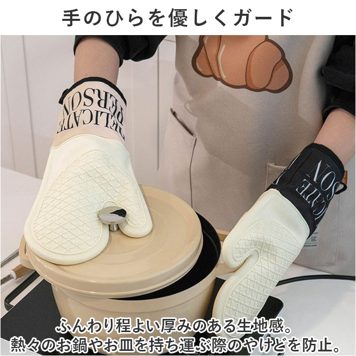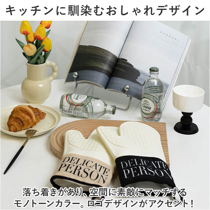 | 商品説明 | ・・毎日のお料理に欠かせないアイテム!ナチュラル可愛い「オーブンミトン」2個セット。 ・【キッチンに馴染むおしゃれデザイン】 ・落ち着きがあり、空間に素敵にマッチするモノトーンカラー。ロゴデザインがアクセント! ・【手のひらを優しくガード】 ・ふんわり程よい厚みのある生地感。熱々のお鍋やお皿を持ち運ぶ際のやけどを防止。 ・【耐熱性があり滑りにくい素材】 ・手のひら(表裏)部分は耐熱性のあるシリコーン素材。凹凸仕様で滑りにくいのもポイント。 ・【耐油・耐水性もあり使い勝手抜群】 ・シリコーン部分は水や油にも強く、拭き取りやササッと水で流すことが可能。 ・【手首もカバー!安心の大きめサイズ】 ・手首まで覆えるサイズ感。大きめの天板なども、しっかりと持つことができて安心。 ・【収納ラクラク◎ループ付き】 ・フックなどに掛けておけば、いつでもサッと取り出しOK。 ・【両手でしっかり持てる2個セット】 ・・2個セットなので、両手鍋やグラタン皿などを両手でしっかり持てて、毎日大活躍。 |