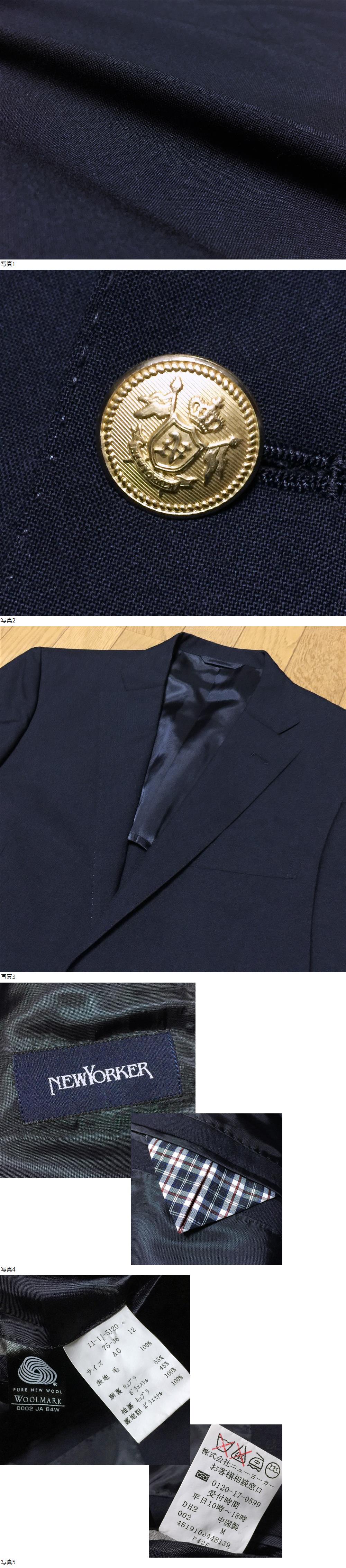 NEWYORKER ニューヨーカー 上質 ウール 金ボタン 2B 紺ブレザー テーラード ジャケット A6 L位 春夏 背抜き 濃紺 ダークネイビー シングル 收藏