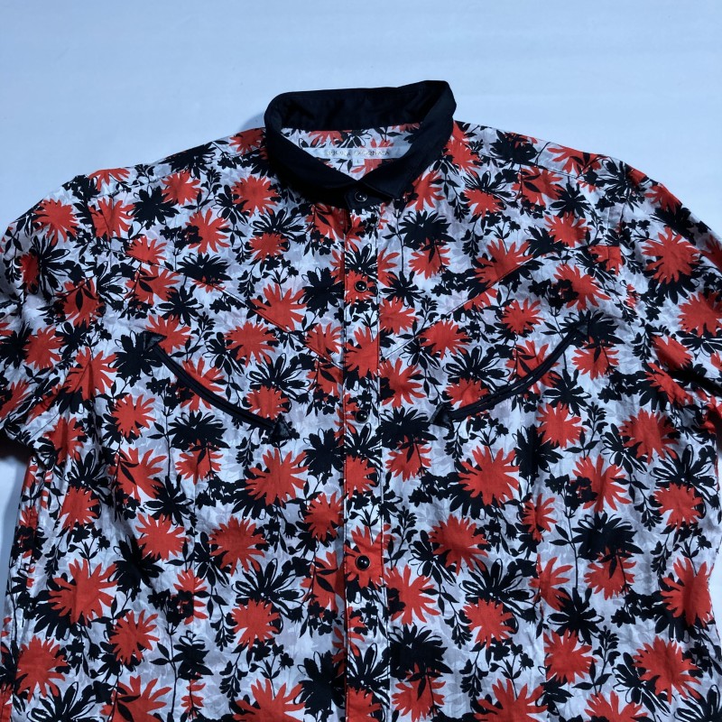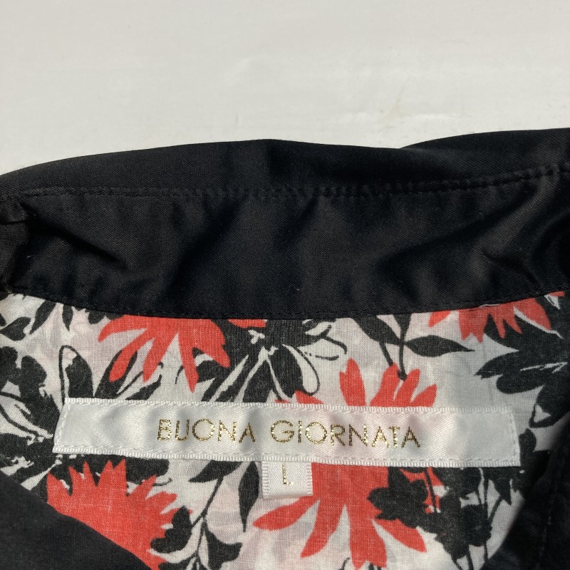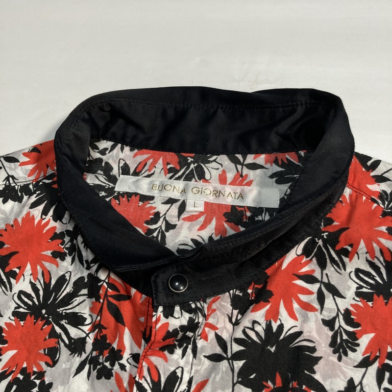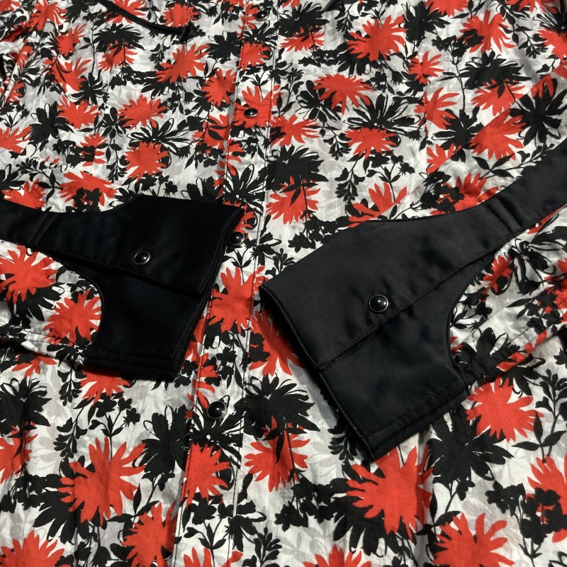BUONA GIORNATA★archive★激レア★モード優美★アクセント花柄 切替クレリック 長袖ウエスタンシャツ 赤オレンジ 黒 白 ボナジョルナータ 收藏