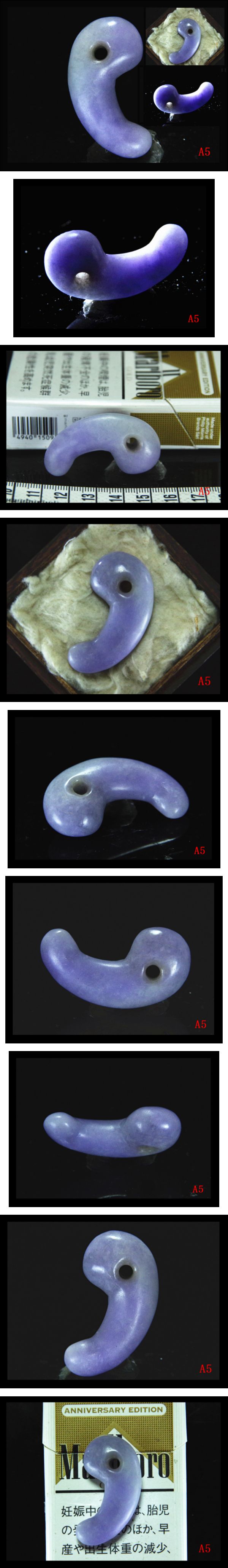 【A5】古墳期★透明感抜群ラベンダー濃淡古代紫色★極上質ろうかん硬玉紫翡翠製製★コ字形勾玉★検古墳出土器祭祀仏像原石 收藏