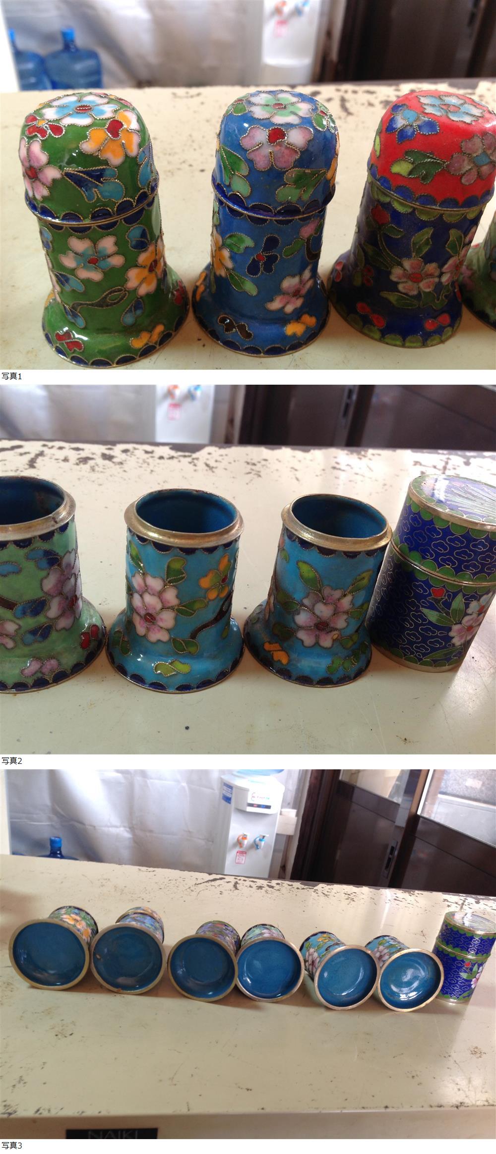 | #中国 七宝焼 景泰藍 小物入れ 蓋付け4個&蓋付けない3個 置物 伝統工芸品 現状品# |