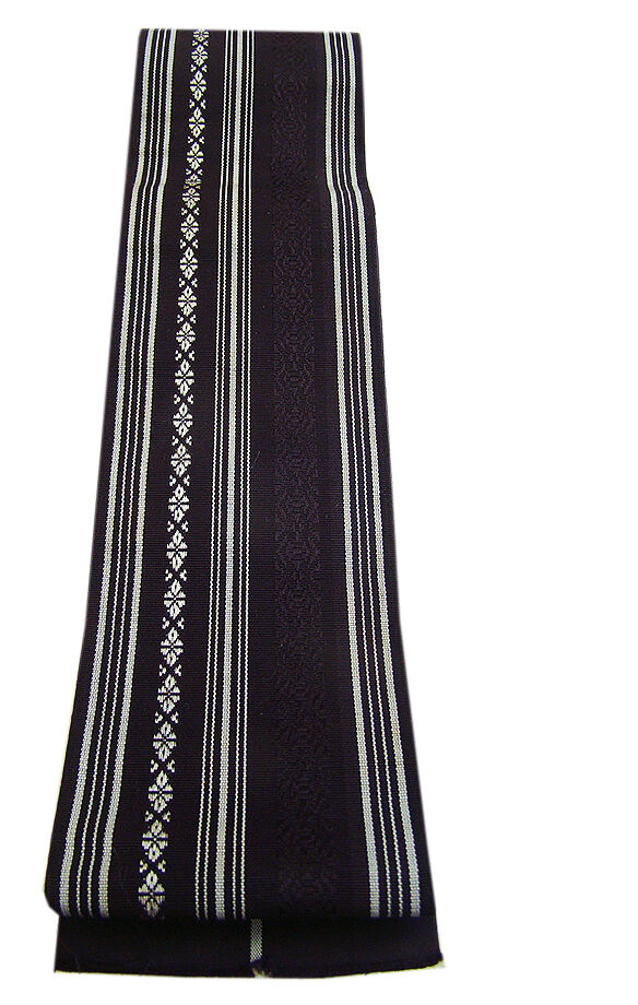 ●シミ・汚れなし。 状態はとても綺麗です。 ●正絹 一度〆たら緩まないと昔から言われるしっかりとした扱い易く 結び易い博多織の角帯。 渋い黒紅色地に灰白色の献上柄の織柄。 裏面は渋い黒紅色地に灰白色の縞柄の織柄。 端は切りっぱなしになっております。 ※締めた時にキュッとなる絹づれの音や帯の締まり具合が心地良い、 人気の本場筑前博多織の粋な角帯です。 浴衣はもちろん、紬や大島からお召し、黒紋付の正装までご使用頂けます。 弓道や剣道・居合道などの袴下帯としてもお薦めです。 |