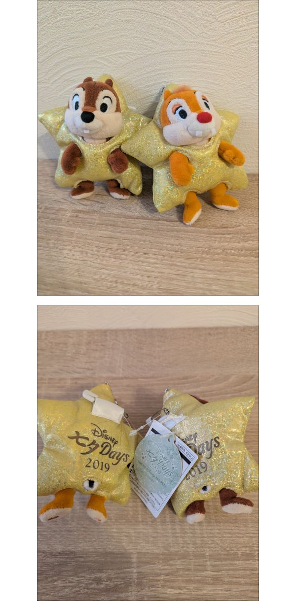 | 商品説明 | 【商品について】 ご覧いただきありがとうございます。 この度出品いたしますのは「 ●ディズニー 七夕 Days 2019 チップ デール ぬいぐるみ● 」でございます。 個人所有物の整理のため、出品する運びとなりました。 中古品ではございますが、ご活用いただける方にお譲りできれば幸いです。 商品の状態、付属品、寸法等につきましては、掲載写真にてご確認をお願いいたします。 補足:当方、ペットの飼育および喫煙の習慣はございません。お気にされる方はご参考ください。