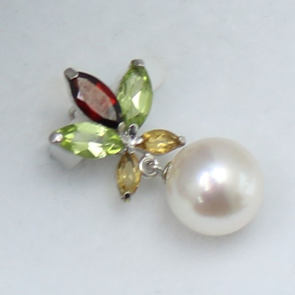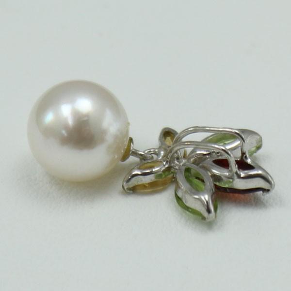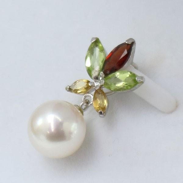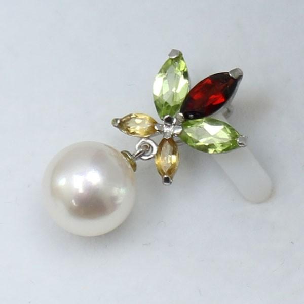 | ガーネット、ペリドット、シトリンの半貴石輝く素敵なデザインペンダントです。 | 胸元を清楚に飾るあこや真珠。同ロットでほぼ同品質になります。 |