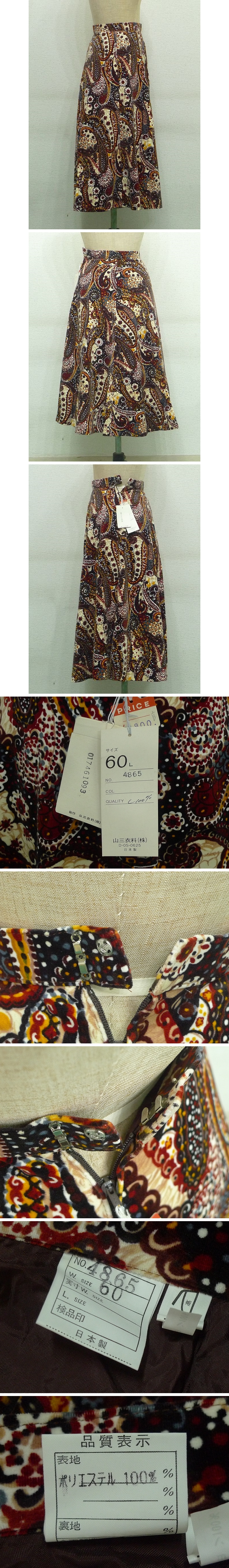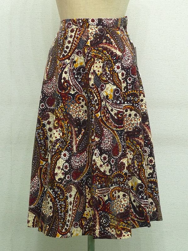 60SR37★昭和レトロなペイズリー柄ヴィンテージフレアスカート ウエスト60 ポリエステル100% 昭和元禄 アングラポップ 收藏