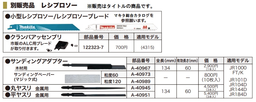 マキタ makitaクランパアッセンブリ122323-7市販のALC用ブレードが取り付きます。■適用モデル・4315