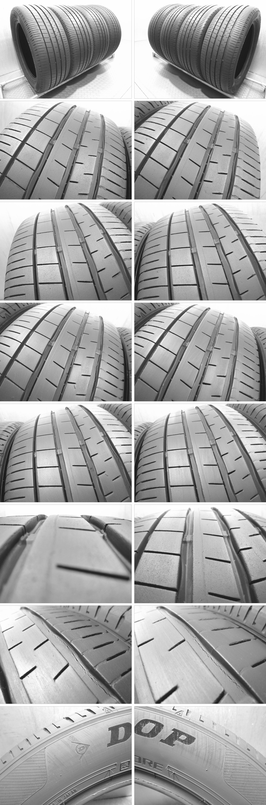 【商品名】 ●ダンロップ VEURO VE304 【サイズ】 ●205/55R16 91V 4本 【残り溝】 ●センター付近で約6.5mm×4本 【製 造】 ●2021年09週×4本 【状 態】 ●バリ山! ●1本のサイドに少しこすり跡があります。 ●OUT側のミゾにひびが出て来ています。(画像参照) ※気付いた傷等の記載はしておりますが、汚れ・小傷・小石・鉄片等が付着している場合がございますがあらかじめ御了承下さい。また残り溝、偏摩耗等は個人差がありますので画像にてご確認をお願いします。 ◆◆落札後のお取引について◆◆ オークション終了後、落札者様から取引ナビにて取引情報をご記入下さいませ。追って送料をご連絡させて頂きます。 | |||||