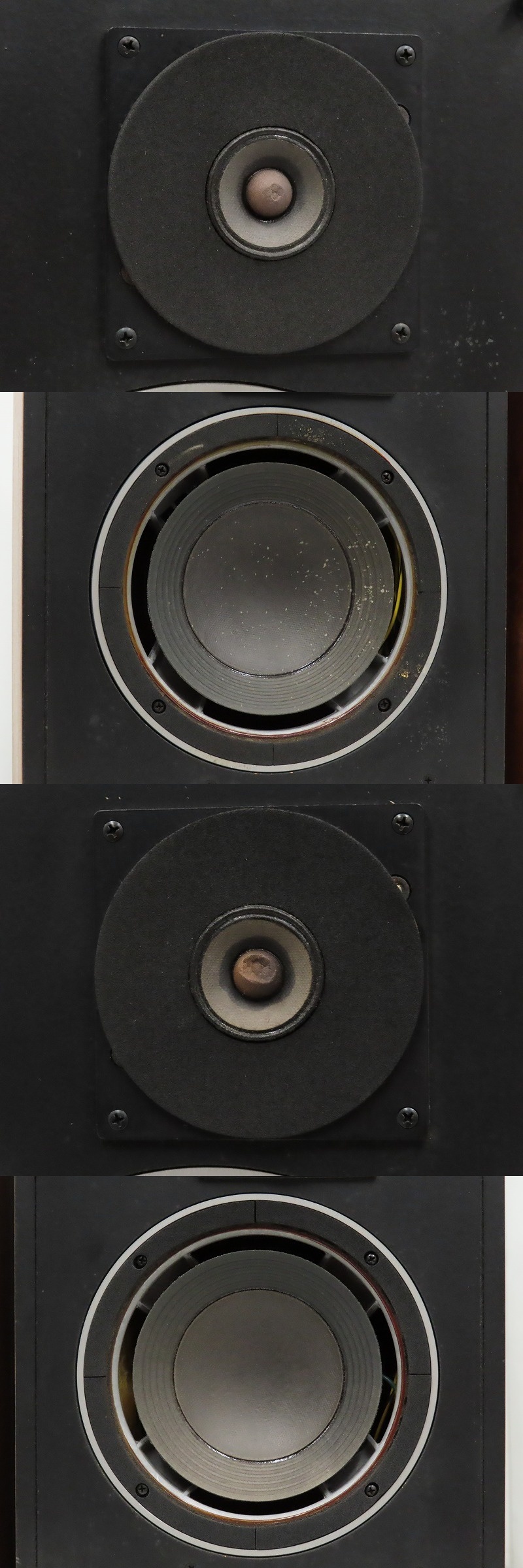 ■メーカー : JBL ■型番 : 4301WX ■外径寸法 : W295×H485×D310mm ■重量 : 12.5kg ※弊社実測の為、多少の誤差はご了承下さい。 ※ペアでの出品となります。 【商品の状態 当店での確認内容】 動作確認をしたところ、片方のツイーターから出音が確認出来ません。また、経年により左右ウーファーエッジが欠損しております。 左右ツイーターセンターキャップにヘコミがございます。 ※上記により【難あり商品】としての出品となります。 「商品の状態」に関しましては当方主観の目安となります。外観などは中古品で個人差もありますので詳細は画像にてご判断ください。 画像にて不明な点はご質問下さい。 出品商品は画像のものですべてになります。画像に写っているもの以外は付属いたしません。 ※注意※ のシステム上、送料表記が送料未定となっておりますが、送料に関しては全て有償となりますので下記を参照下さい。 【送料 全国一律 7,200 円 沖縄、離島は別途お見積り】 ※送料がお得になるサービスです(下取りシステムのご案内です) ストア決済利用時にクレジットカードやPayPay残高/PayPayクレジットを利用の方は留意点がございますのでこちらを参照上ご利用ください。 当ストアでは商品を安全にお届け出来るよう提携運送会社と協議の上、発泡緩衝材や強度段ボールの使用等 運送会社が指定する梱包方法や資材を採用しております。 より安全にお届け出来るよう商品仕様により梱包サイズが大きくなる場合や個口数が増える事がございます。 【当ストアオークションルールを入札前に必ずご確認ください。】 【落札後の取引手順】 ・落札後は取引ナビにて、必要事項をご入力後、送信ください。 取引終了後48時間(土、日は除く)以内に入力をお願い致します。 ※ご連絡が頂けない場合は落札者様都合でのキャンセルとさせていただきます。 ・落札代金(商品代金+消費税+送料)の入金をお願い致します。 ※大型商品の場合は送料確定後の決済となる為取引ナビを入力頂き、当ストアより送料のご案内が来るまでお待ちください。(土曜、日曜、祝日の場合は翌営業日より順次ご案内いたします) ・お支払い方法はクレジットカード/PayPay残高/PayPayクレジット/PayPay銀行/ゆうちょ銀行のみです。 ※商品代金引換(代引き)のお取り扱いはしておりません。 ※領収証の発行が必要な方はご連絡ください。 ※銀行振込の際の振込手数料はご負担願います。 ・入金確認後に出荷手配を致します。 (原則入金確認後3営業日以内に発送いたしますが、大型や重量のある製品はお時間をいただく場合もございます。) ・発送は当店指定の運送会社の元払いのみでの発送となります。 ※他の運送会社、送料代引き等は致しかねます。 ※落札者様ご自身での運送会社の手配いただく事も可能ですが荷物事故の責任の所在の問題上、梱包は致しかねます。 ※店頭にお越し頂き手渡しも可能(福岡市早良区)です。ご希望の方はご落札後にご連絡下さい。 ・大型/重量物商品の送料につきましては商品の特性上、荷降ろし状況等により送料が大きく前後し運送業者に別途見積りが必要な為、早めのお問い合わせにてお見積り上、入札をお願い致します。 【初期不良の保証について】 ・商品到着後の初期動作不良、また配送中の事故による破損、不具合が有る場合は、商品発送後10日以内に当ストアまでご連絡ください。当ストアでは修理での対応を優先させて頂きますが、修理不可の場合は全額返金させて頂きます。 (商品代金+消費税+送料のお支払い頂いた金額となります) 【初期不良の保証の対象外について】 次の場合は保証の対象外となりますのご留意ください ・ジャンク商品、現状商品、難あり商品での出品商品。 ※難あり商品に関しましては動作確認時に一部動作不良が確認された商品になり、記載している動作確認以外にも、動作不良がある可能性もございます。こちらに関しましても保証対象外となりますことをご理解ください。 ・年代物のオーディオなどで、当店にてわからない範囲で部品が交換されている場合 ・楽器類の特殊機材(マイクロスコープ等)での確認までは行っておりません。気になる方は事前にご質問いただくか、入札をお控えください。 ※初期不良に関しましては【商品の状態】に記載のもの、またそれによって起因する動作不良は対象外です。 ※商品発送後10日を過ぎてのご連絡は対応が出来ませんので、商品が到着しましたらお早めに確認をお願い致します。 【メーカー保証の加入・継承】 ・未使用品、展示品やメーカー保証期間が残っている商品に関しまして、メーカー保証の加入、継承が必要な方は、落札後取引ナビ内にて当ストアにお知らせください。商品発送までにご連絡いただけない場合、メーカー保証の手続きを承れない場合があります。 【評価について】 ・評価不要の場合、必ず取引ナビの「要望欄」にてお知らせください。それ以外でご連絡をいただいた場合、対応できない可能性がございます