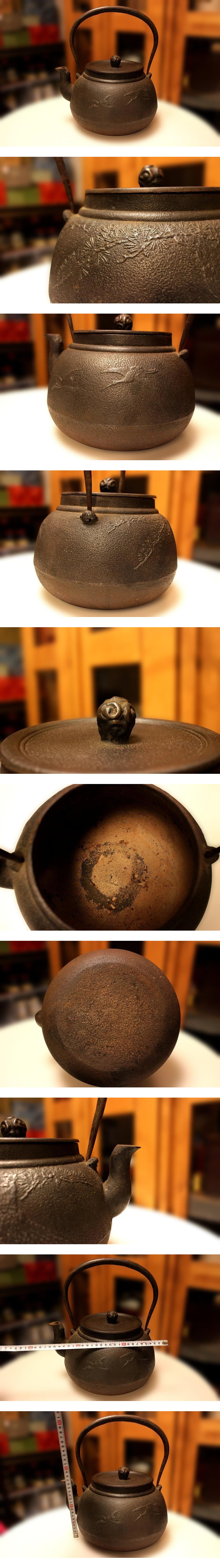 古鉄瓶 松鶴模様大鉄瓶 南部鉄瓶 「水漏れなし・状態良好」 /砂鉄煎茶道具急須湯沸銀瓶茶托茶碗骨董品古道具中国古玩茶筒 收藏