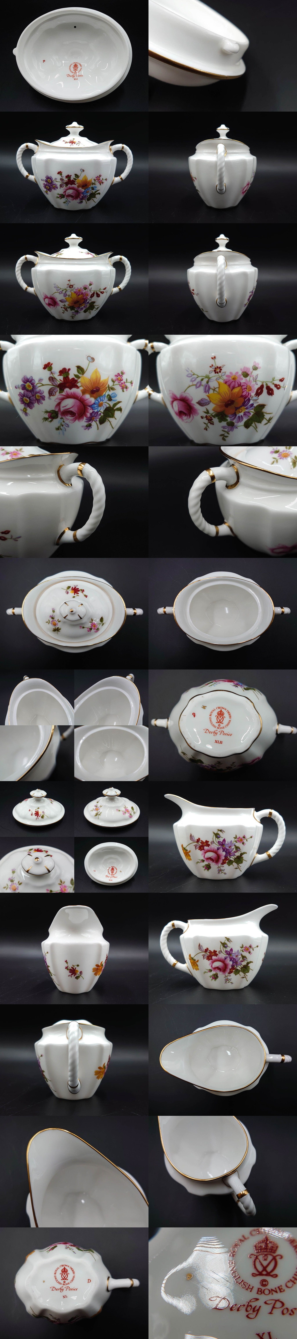 R-085301 イギリス ROYAL CROWN DERBY(ロイヤルクラウンダービー) ポジー ティーポット・シュガーポット・クリーマーセット(洋食器) 收藏
