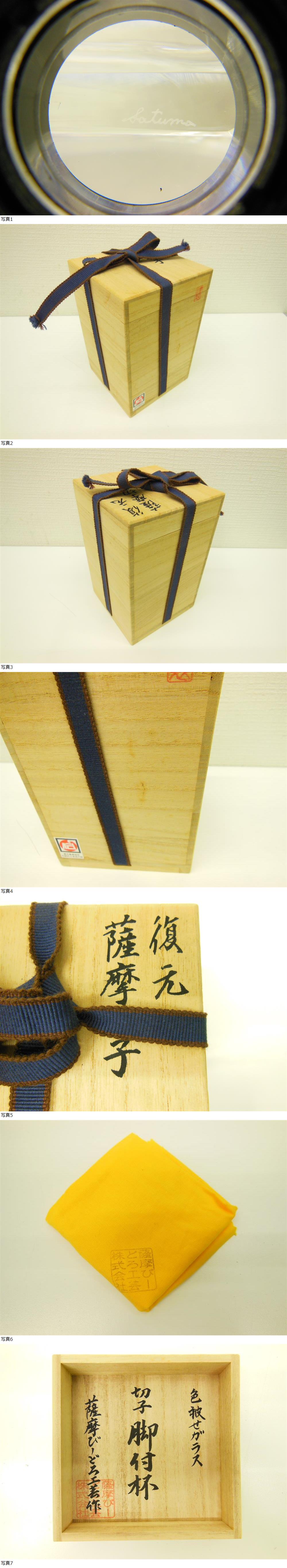 工芸品祭 美品!! 復元 薩摩切子 切子脚付杯 薩摩びーどろ工芸株式会社 刻印有 共箱付 色被せガラス 酒器 食器 自宅保管品 收藏