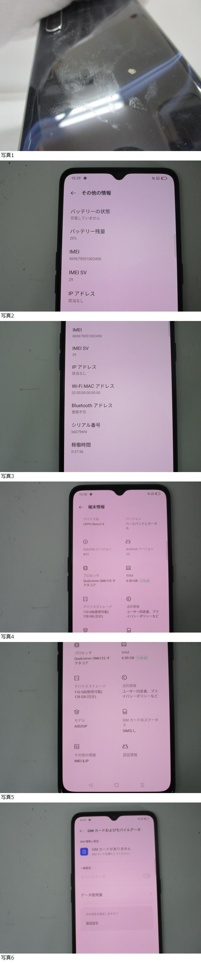 スマホ祭 ソフトバンク OPPO Reno A A002OP スマホ 判定〇 本体のみ SIMロック無 使用品 初期化済み 汚れ有 現状品 自宅保管品 收藏