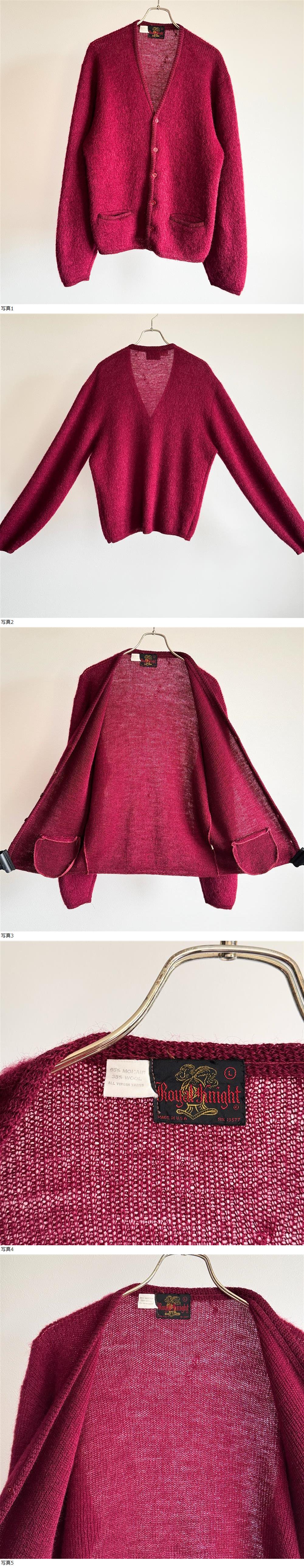 希少《 Mohair 65% 》50s 60s【 Royal Knight ボルドー 毛足長 モヘア カーディガン L ビンテージ 】 收藏
