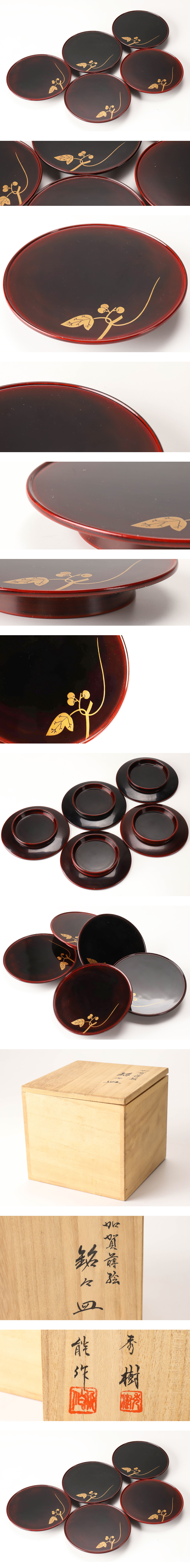 【流】能登輪島塗 秀樹 能作 合作 加賀蒔絵銘々皿五客 共箱 DK528 收藏