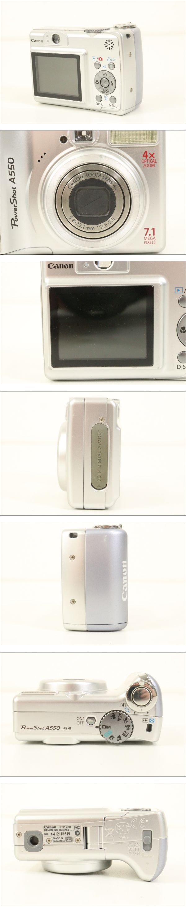 【ジャンク品】CANON PC1230 キヤノン POWER SHOT A550 デジタルカメラ 4X 5.8ー23.2mm 1:2.6ー5.5 カメラ デジカメ 撮影_IIR_D0204-I004 收藏