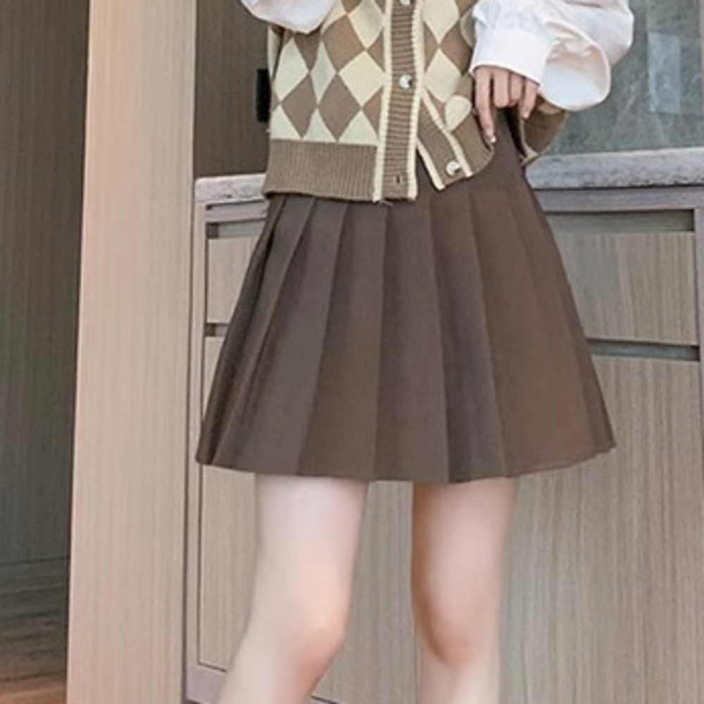 ☆ ダークブラウン×ロング丈 ☆ L ☆ プリーツスカート レディース キュロット 美脚 キュロットスカート スカート レディース 收藏