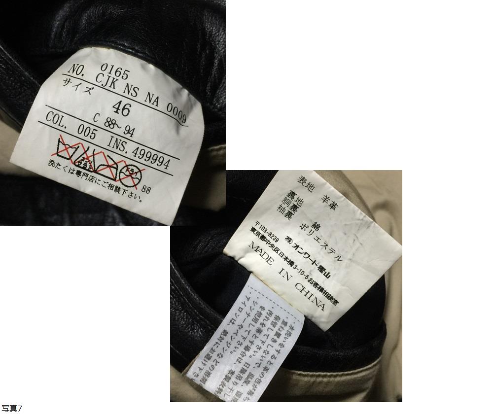 | 【ブランド】 23ku HOMME Vintage 23区オム ヴィンテージ 【デザイン・モデル】 羊革 ラムレザー ジップ ライダース ブルゾン ジャケット 【生産】 ㈱オンワード樫山 【詳細・コメント】 23区HOMME の現在では廃盤となった「VINTAGE」ライン 羊革 レザージャケットになります。その名の通り、レザー表面に長年着古したかのようなアンティーク加工を施し、ヴィンテージ感を再現した雰囲気のある一着。非常に柔らかく滑らかな肌触りの高級羊革ラムレザーを使用した高級感溢れる逸品。フロントはジップアップ、胸にアクセントの編込みが施されたシンプルなデザイン。雰囲気ある着こなしを演出して頂けます。 正規品です。 【サイズ】 表記: 46 (C88-94 メンズM程度) ※実寸を参考にして下さい。 平置実寸:身幅54㎝ 着丈65cm 肩幅46㎝ 袖丈60㎝ ※多少の誤差はご了承ください。 【カラー・パターン】 黒 ブラック ※ご覧になられるモニターや、デジカメの撮影具合によって色味が異なる場合がございますのであらかじめご了承ください。 【品質】 表地:羊革 ラムレザー 裏地:(胴裏)綿 (袖裏)ポリエステル 【コンディション】 USED 中古品 です。元々加工によるスレ・シワ・色ムラ等あり。スレ・シワ・色ムラ等全体的に使用感ございますが、致命的なダメージは無くまだまだ着ていただけます!※写真参考に判断して下さい。ユーズドアイテムにご理解ある方のみご入札お願い致します 。 | |||