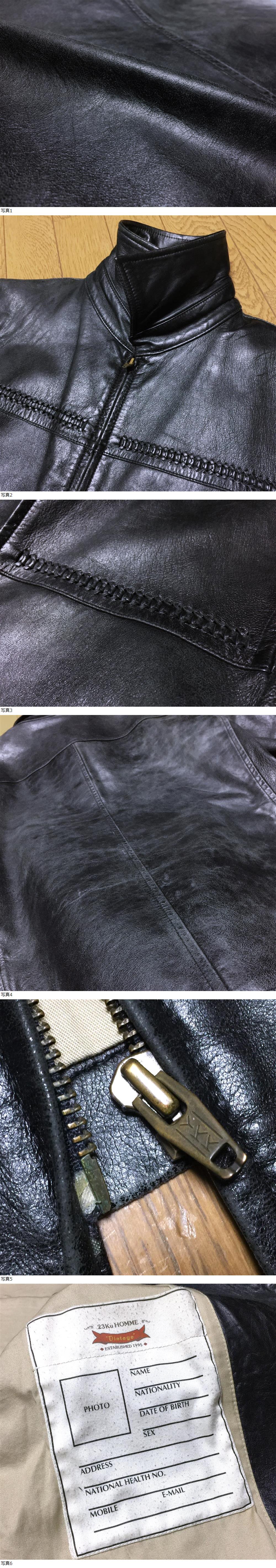 高級 23区 HOMME Vintage 23区オム ヴィンテージライン 羊革 ラムレザー ジップ ライダース ブルゾン ジャケット メンズ 46 M 黒 ブラック 收藏
