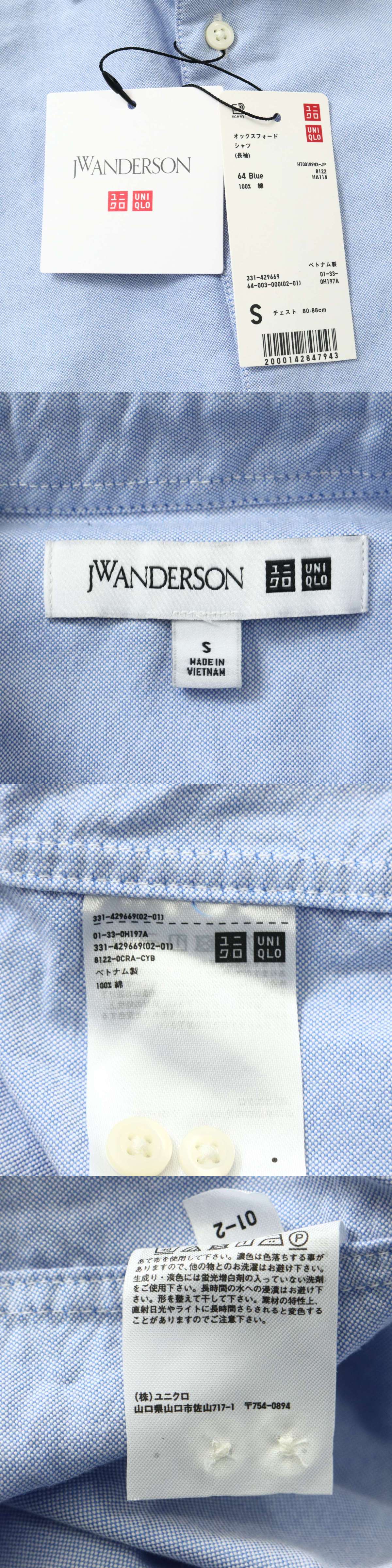 【新品 未使用】 UNIQLO × JW ANDERSON ユニクロ JWアンダーソン 通年★ 長袖 オックスフォード シャツ Sz.S メンズ 收藏
