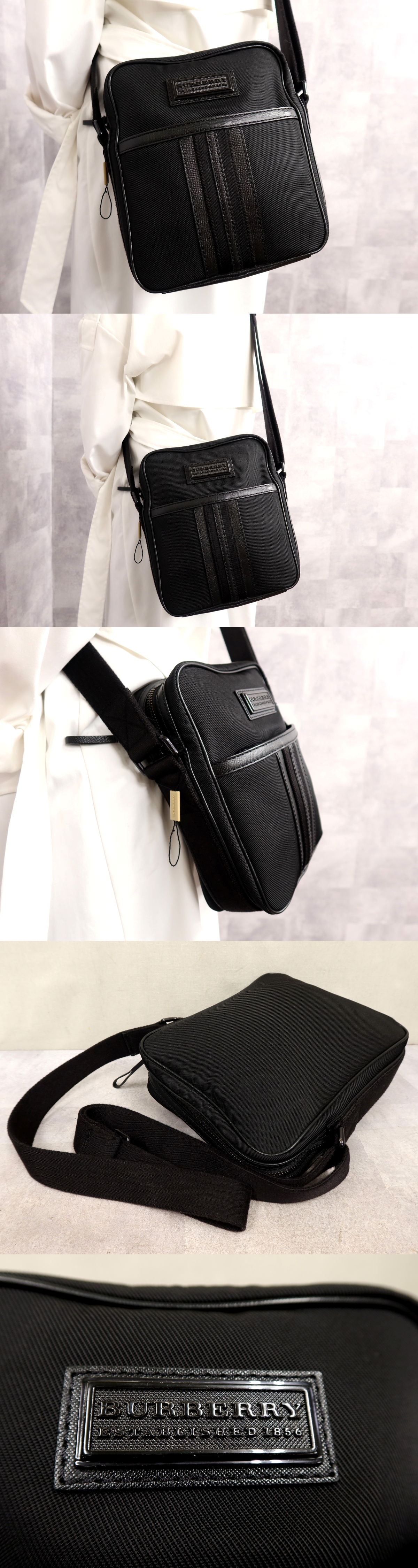 ●超美品●BURBERRY バーバリー●メンズ●キャンバス サフィアーノ レザー 本革●ショルダー バッグ●黒●斜め掛け●収納 かばん●Js67056 收藏