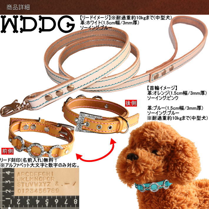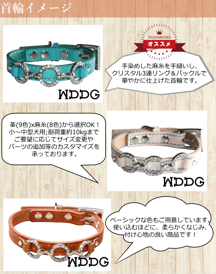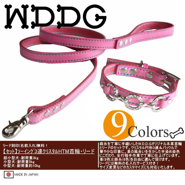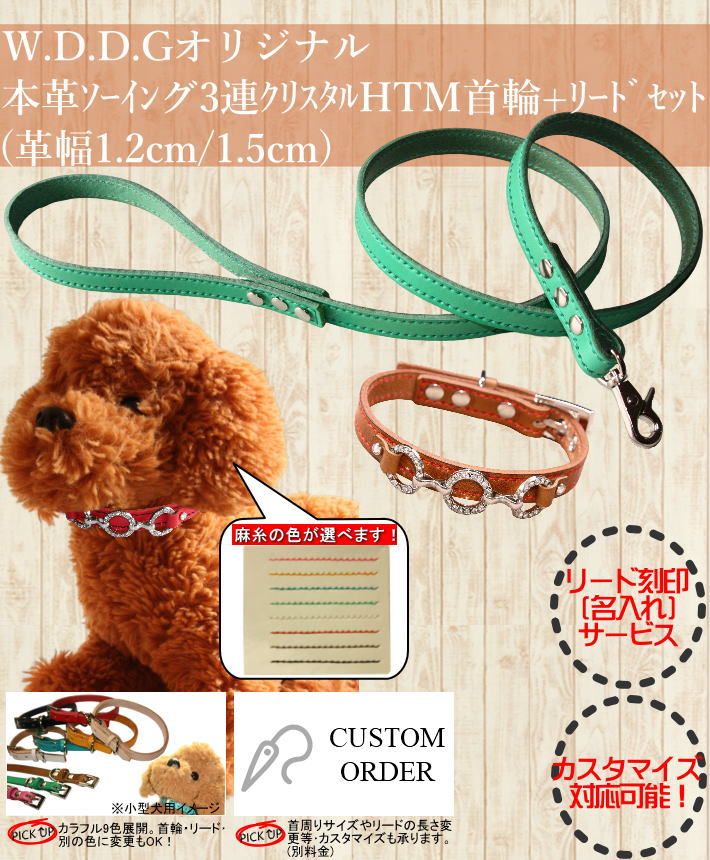 犬 革 首輪 リードセット 名前入り 本革 ソーイング 3連 クリスタル HTM 首輪 リード セット 超小型犬 小型犬 中型犬 犬首輪 收藏