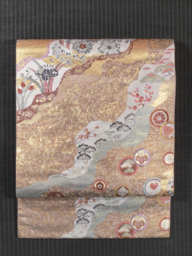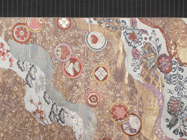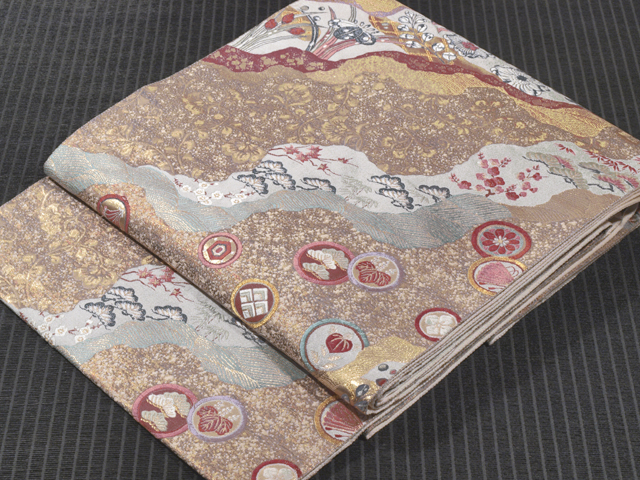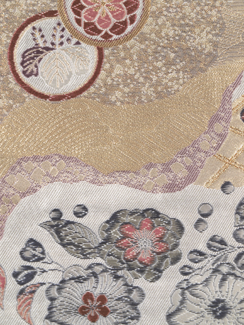 道長取りに草花と丸文 西陣織 袋帯 TAGA02008風楽 |