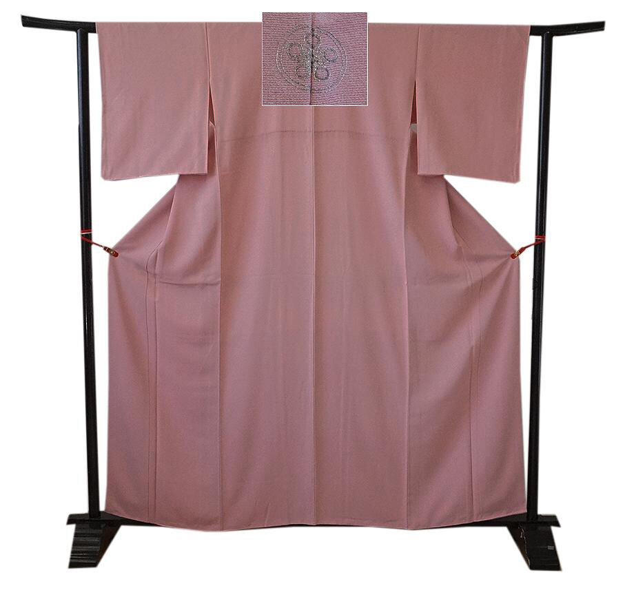 きものしらゆり 身丈159cm 裄64cm 10~5月 堅牢染 極上ちりめん 鴇色 色無地 梅鉢 正絹 仕立て上り 身長150cm~156cmの方に最適 V729 收藏