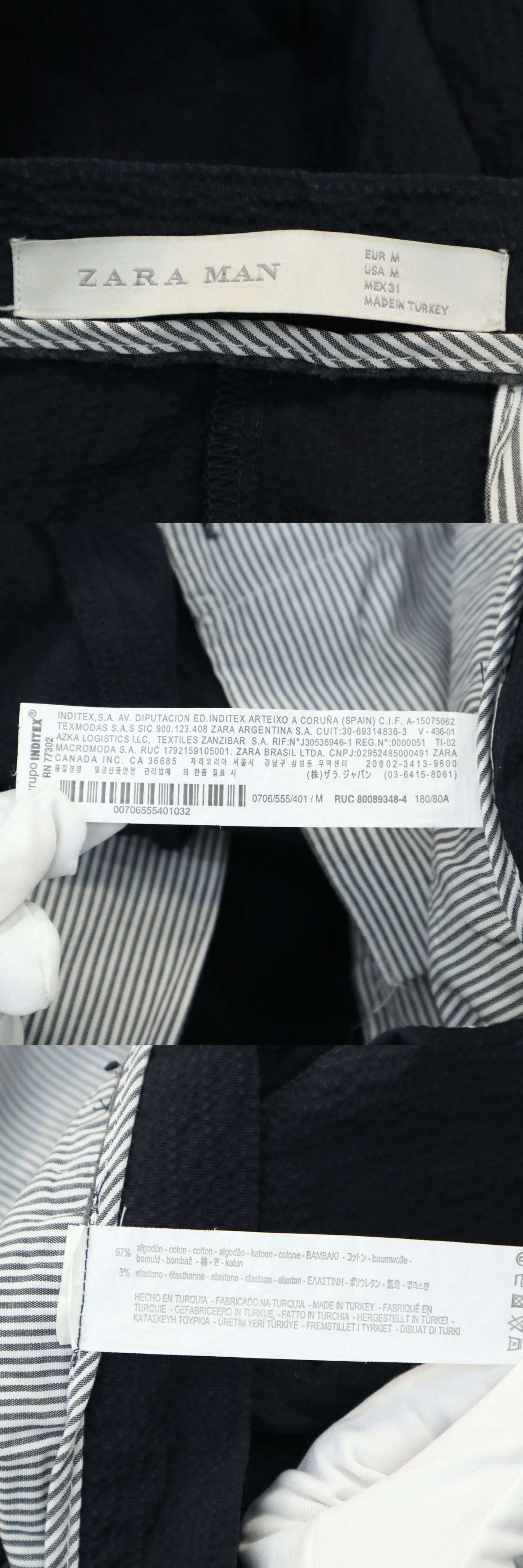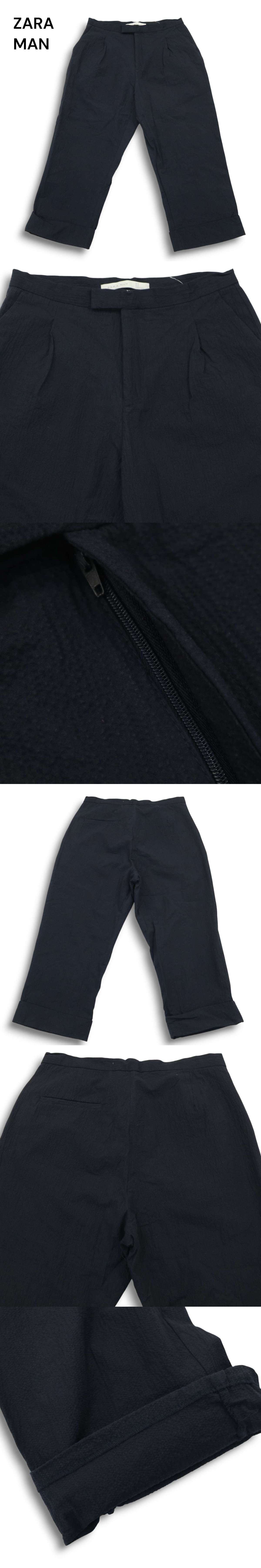 ZARA MAN ザラ マン 春夏 シアサッカー★ タック入り ワイド スラックス パンツ Sz.M メンズ ネイビー 收藏