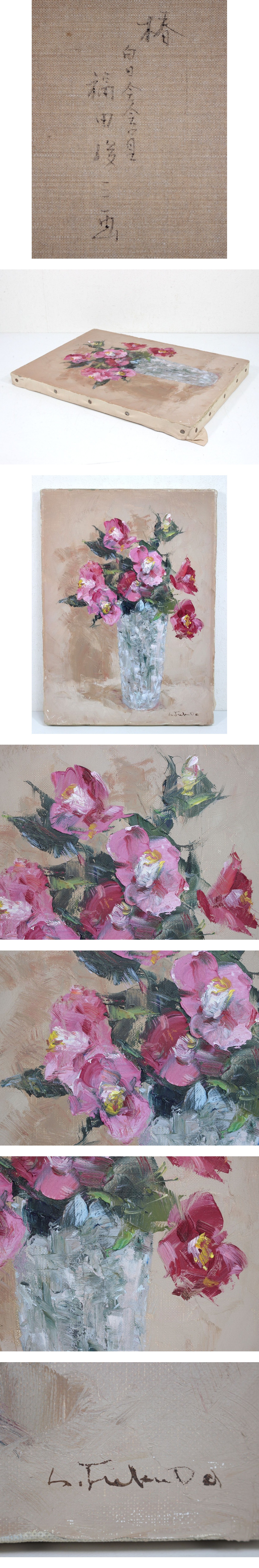 【真作】 福田俊三 作 油彩『 椿 』 F4号 直筆サイン 裏書あり 油絵 花 絵画 額装 額寸/約51.2×42cm 白日会会員 收藏