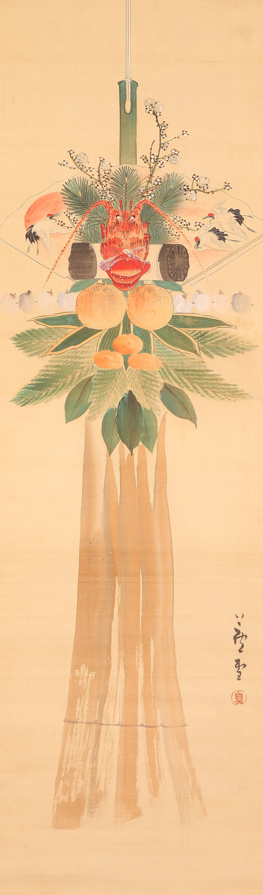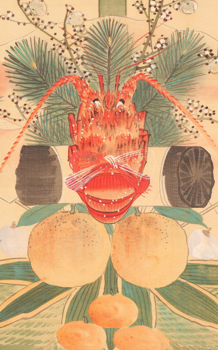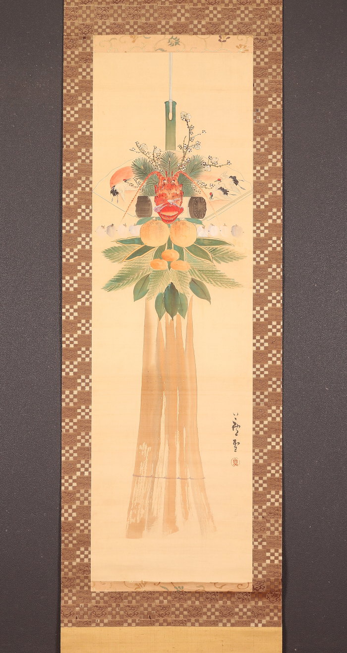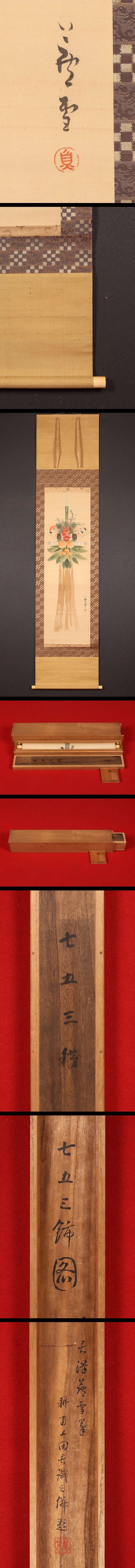 【模写】【伝来】am8043〈長沢芦雪〉七五三飾図 11月掛 上田耕甫極箱 二重箱 円山応挙師事 江戸時代中後期 京都の人 收藏